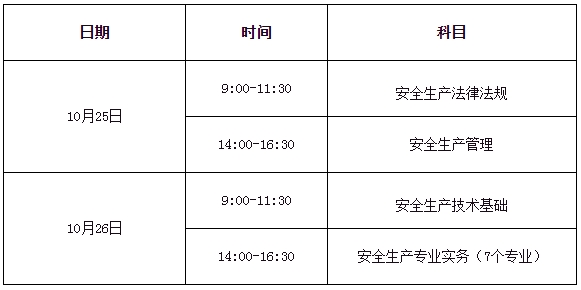 2025年度中级注册安全工程师职业资格考试时间安排表(考试日期:10月25日、26日)
