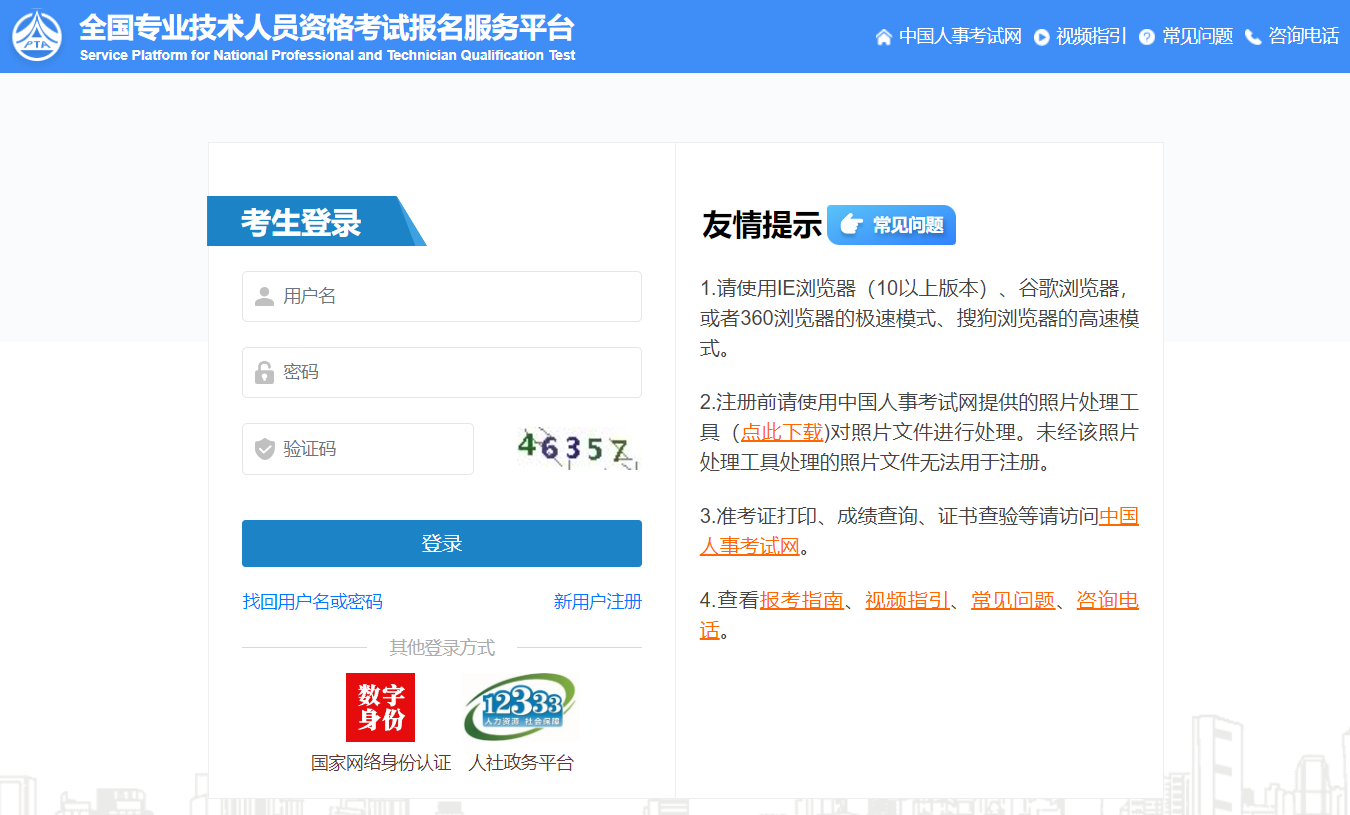 快速入口:全国专业技术人员资格考试报名服务平台http://zg.cpta.com.cn/examfront/login/initLogin.htm